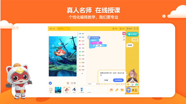 4、提供了真人老师上课和辅导老师答疑的服务,确保孩子们在课前、课中、课后及课外都能获得专业且个性化的指导和支持。