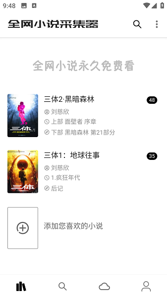 全网小说采集器app让大家在这里可以找到全网各种小说资源,专门为喜欢看小说的人群打造的,想怎么输入关键词进行聚合搜索都行,没有任何的限制,找到的小说都可以收藏起来,之后进行批量下载,非常的轻松。