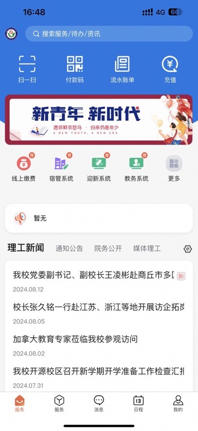 郑州理工职业学院我爱理工软件为在校的师生提供多种多样的服务,对各种校园服务都进行全面的划分,日常使用起来都非常的方便了。平台上可以轻松查看校园最新的动态,各种通知公告都可以及时的了解,非常的便捷。
