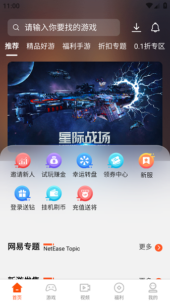 2、进入首页,为玩家推荐了很多的游戏资源,及时发现当前最火爆的游戏。