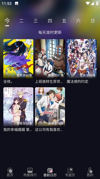 4、“番剧日历”页面,提供每天动漫更新情况。