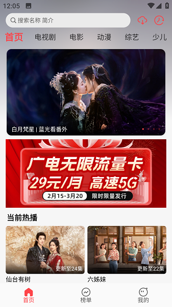 2、进入首页之后,汇集了海量的影视资源,包括了电视剧、电影以及综艺等。