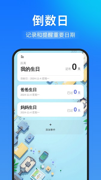 2、用户可以设置倒计时提醒即将到来的节日,如圣诞节或春节,提前准备礼物和庆祝活动。