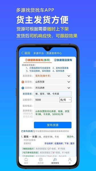 3、货主可以通过手机轻松发布自己的货源信息,并快速找到合适的货车进行运输,非常方便。