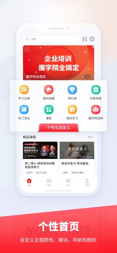 魔学院app专门为企业打造的一站式培训平台,让企业员工在线轻松学习,带来的课程资源非常的全面,企业可以让员工学习对应的课程,提升员工的职业技能,想怎么检测学习的成果都行的。线上可以利用碎片式的时间进行学习,实时保存进度。