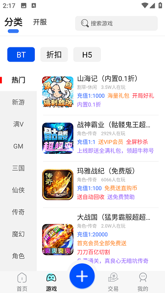 2、用户可以在这里找到海量的热门游戏,涵盖仙侠、三国、卡牌二次元等多种类型,轻松筛选。