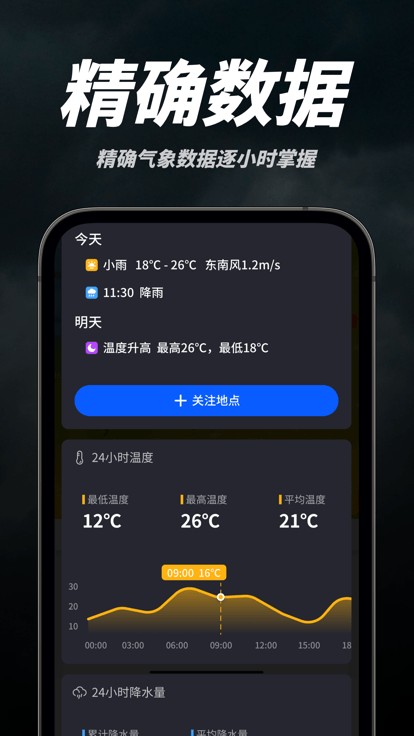 1、实时天气数据:提供通过卫星,当前和以前的云图实时传输数据,并每15分钟自动刷新数据以确保信息的及时性。