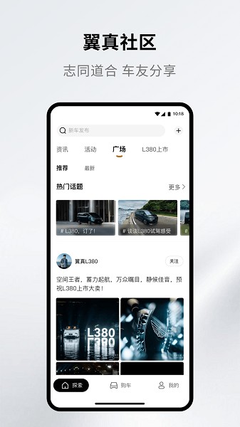 app内设有翼真社区,用户可以参与各种用户活动,与其他车主分享用车经验、交流生活点滴。用户还可以加入不同的兴趣圈子,结识志同道合的朋友,拓展社交圈。