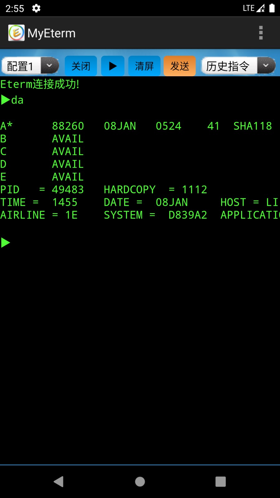 连接成功后,你可以输入各种 Eterm 指令来进行航班查询、机票预订、退改签等操作。
