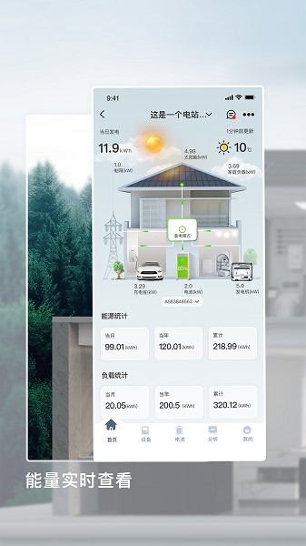用户可以添加和管理设备,查看设备的用电、发电信息,管理电池的充电状态等详情信息
