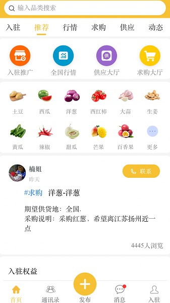 1、汇集了全网百万农产品采购商的需求信息,通过这一功能一站式了解市场需求,提升供需对接效率。