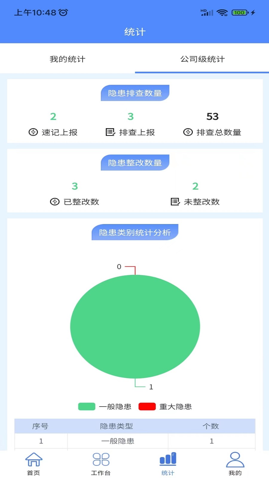 6、APP可统计个人和单位的隐患上报数据、整改数据一目了然掌握隐患汇总数据。