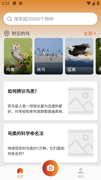 允许用户直接通过设备相机拍摄鸟类照片进行识别,或者从相册中选择已有的鸟类照片上传。