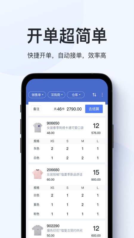 1、专为档口老板设计的高效管理进销存的开单记账软件,通过数字化手段智能管理店铺,提升管理效率。