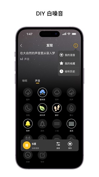 提供丰富的白噪音选项供用户选择,帮助缓解压力和疲劳。