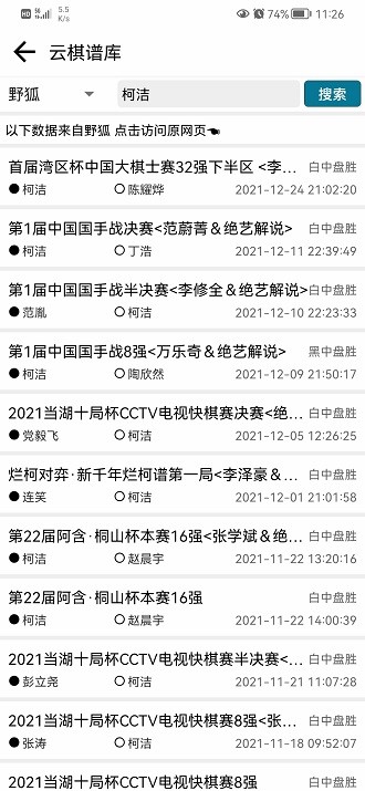 4、提供了丰富的云棋谱库,集成了多个来源的棋谱数据,并支持通过用户名快速搜索特定棋谱,怎么使用都行。