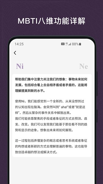 1、专注于提供16种人格类型的百科知识应用,特别适合对MBTI(迈尔斯-布里格斯类型指标)感兴趣的人群使用。
