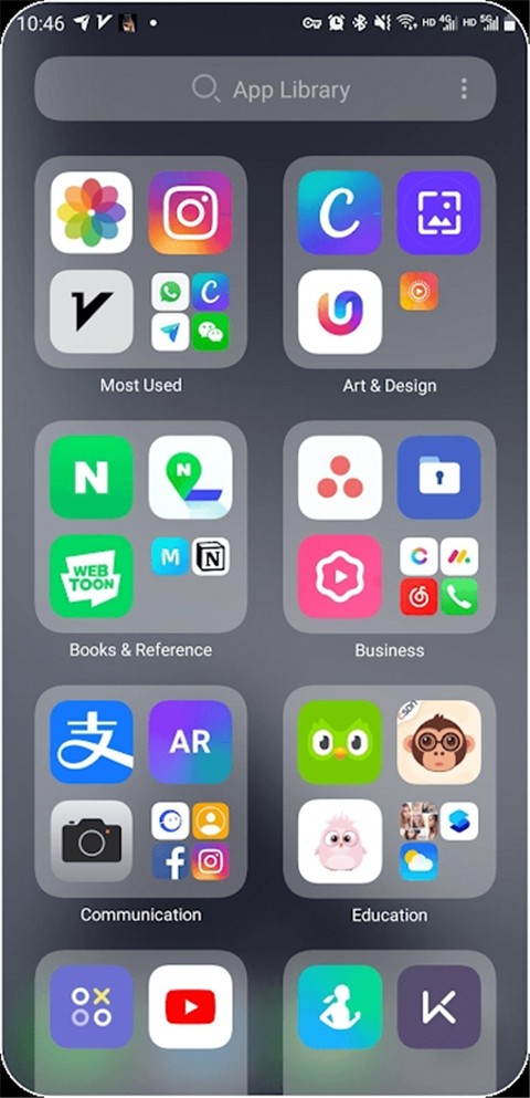 2、借鉴iOS 14的应用程序库特性,自由选择桌面应用展示,精简至最常用,一目了然。