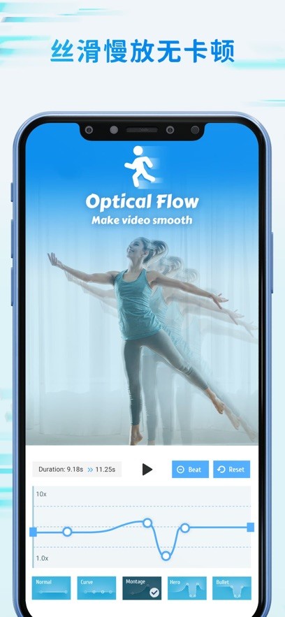 1、基于深度学习的帧插值模型的专业视频补帧编辑器,专为制作流畅的慢动作视频而设计,轻松调整视频的速度和帧率。