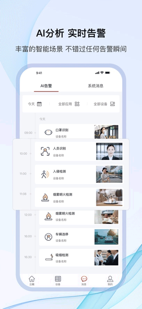 我们融合了前沿AI技术,对监控画面进行深度智能解析。一旦发现异常情形,如人群聚集、未佩戴口罩等,APP将即刻推送预警信息,助力用户迅速响应。