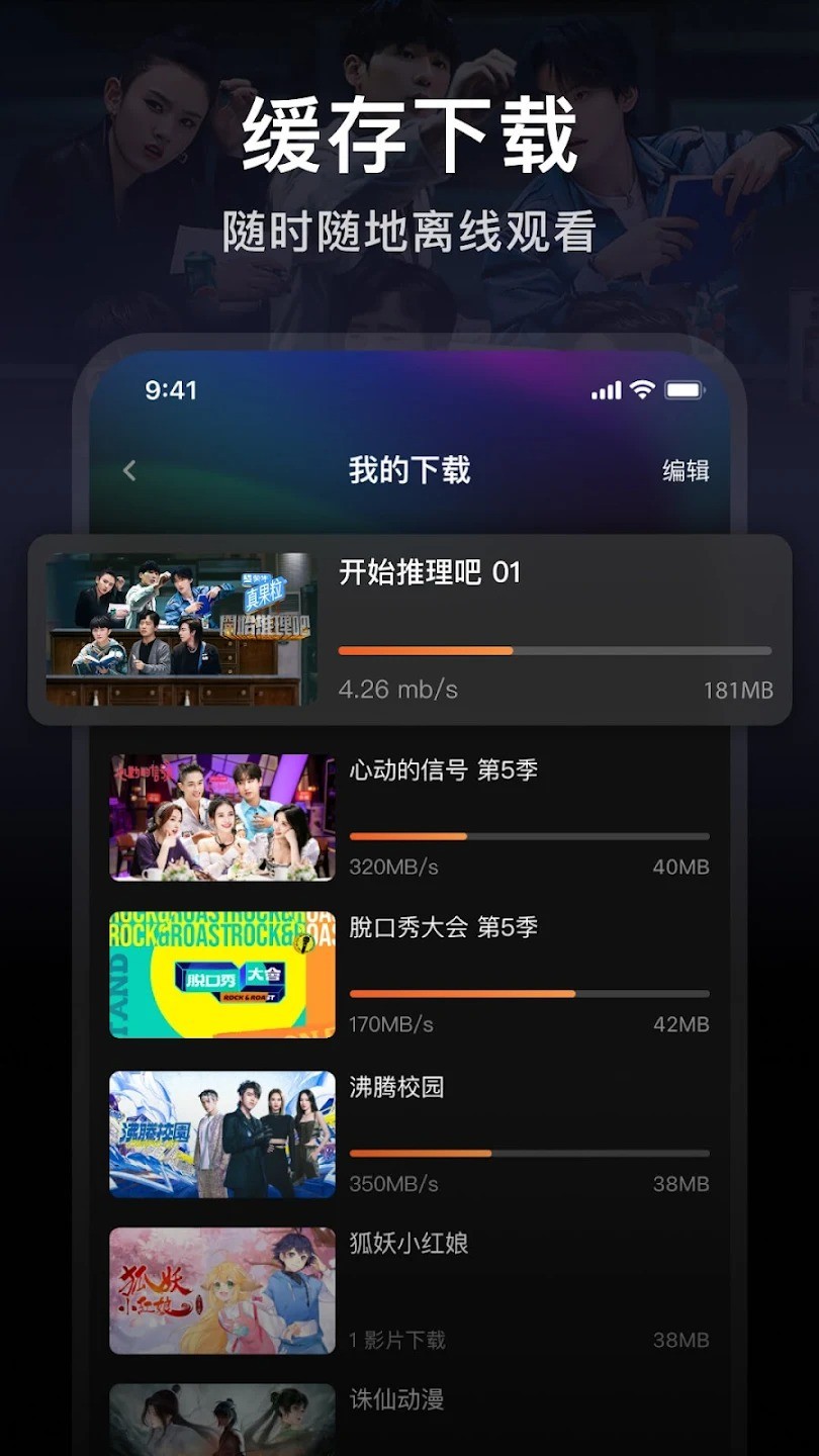 3、支持缓存下载功能,让用户即使在网络不佳或无网络的情况下也能享受娱乐时光,随时随地看剧了。
