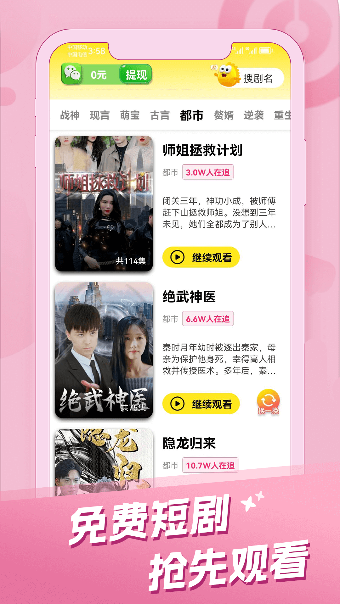 剧爱看2025官方版为大家带来了海量的短剧资源,每天都在及时的更新短剧中,全网的短剧在这里都可以轻松的进行观看,日常追连载的短剧很方便,时刻进行收藏,实时保存自己的看剧进度,下次打开平台可以继续看。