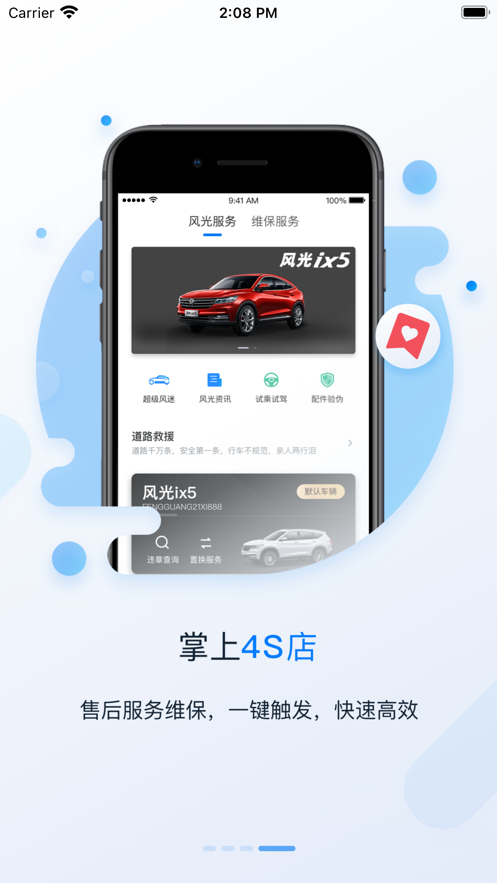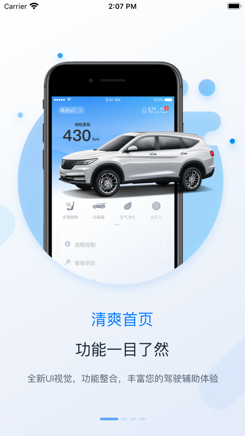 1、专为东风小康用户设计的智能网联应用程序,通过更丰富的人机互联功能,提供了一个全新的智能用车体验。