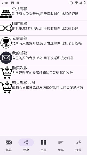 2、包括临时邮箱、公共邮箱和公益邮箱,满足不同用户的需求,特别是在需要匿名或短期使用的场景下表现出色。