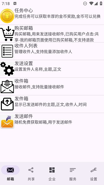 提供基本的邮件发送和接收服务,支持多种类型的邮箱账户,包括临时邮箱、公共邮箱和公益邮箱。