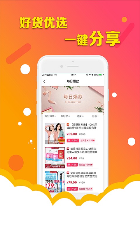 3.为用户提供最新优惠券每天更新,及时领取大量大额优惠券,还可以享受省钱购物,在线购物海量潮流服饰产品。