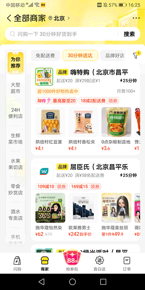 【美团闪购】全新上线,覆盖超市便利、食材、水果、手机家电、美妆个护、鲜花绿植、母婴用品等全品类,打开美团点闪购,30分钟好货到手,更有专属福利享不停。