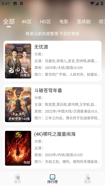 1、带来了大量的影视剧,每日更新最新影视资源,让用户可以及时获取全球热门影片和剧集的信息,保持内容的新鲜度和吸引力。