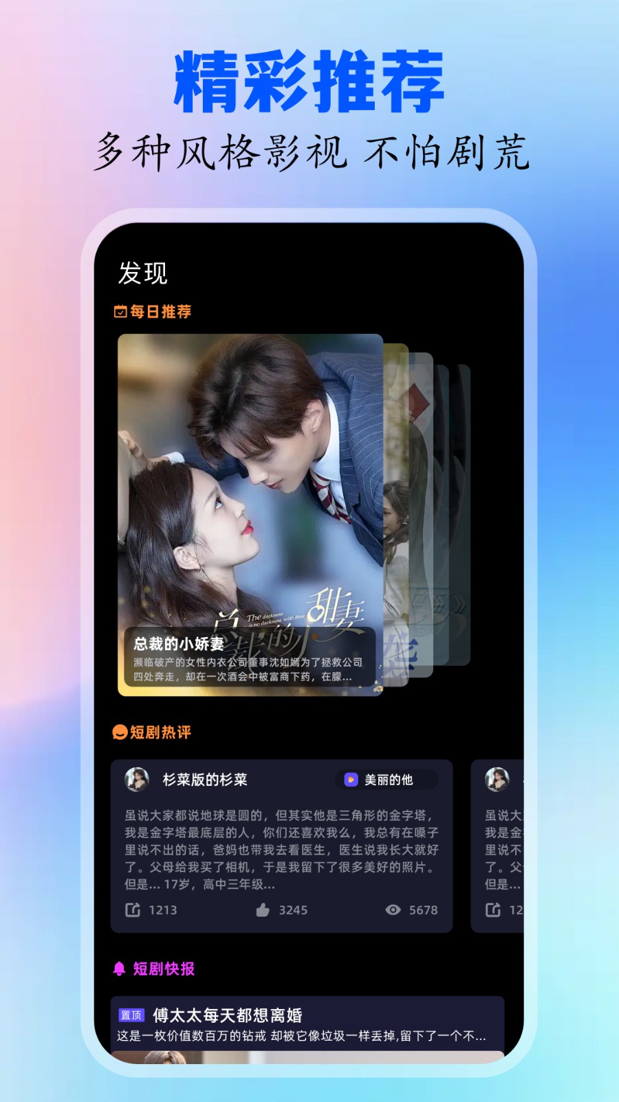 1、聚合多种类型的短剧资讯,打造一站式短剧内容服务平台,满足快节奏生活中碎片化娱乐需求。