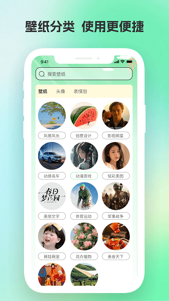 情感语录、心灵鸡汤、美女明星、可爱萌宠、文字物语、自然风景、节气节日、情侣壁纸、头像表情、绿色创意荧光特效夜光壁纸。
