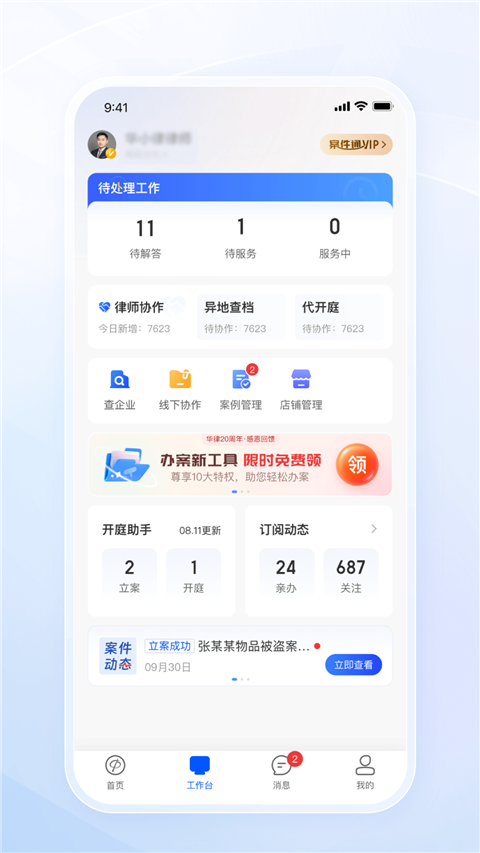 6、智能工具:集成多种智能法律工具,如一键获取案源、快速响应用户咨询等,全方位提升工作效率。