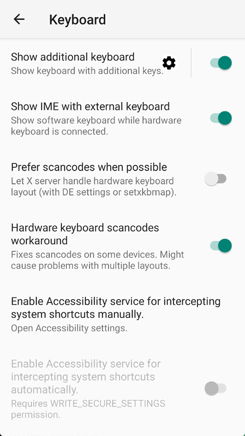 启动后按返回能够唤醒手机键盘,推荐使用 Hacker's Keyboard 方便打快捷键。
