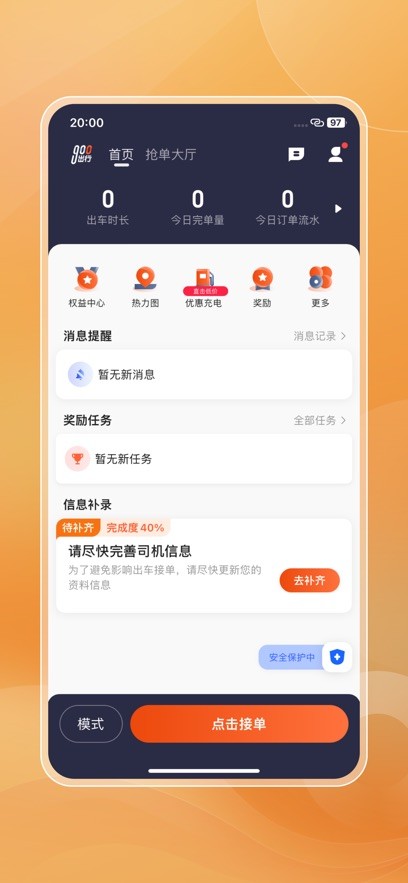 司机可以通过一键操作进入或退出接单模式,操作简便快捷。