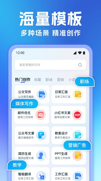 1、多场景适用,支持多种写作场景,从公文撰写到社交媒体文案,覆盖广泛的应用范围。