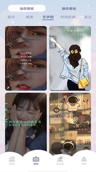 底部有壁纸板块,分为动态和静态两个子板块。用户可以根据自己的偏好选择合适的壁纸类型,并通过顶部分类选项切换风格。