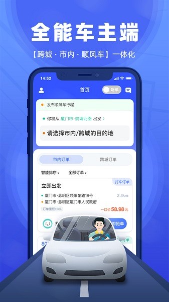2、平台覆盖多个城市,支持同城及跨城出行订单的接收,满足司机多样化的出车需求,让每一位司机都能灵活安排工作时间和路线。