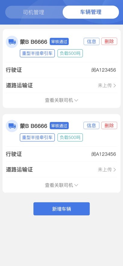 3、车辆管理模块功能强大,支持多辆车同时添加与分类管理,方便司机对不同车辆的运营状况进行统一调度与维护。