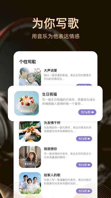 2、不论你是毫无音乐基础的新手,还是经验丰富的专业创作者,AI音乐创作都能根据你的需求,提供个性化、智能化的作曲辅助,激发灵感,拓展创作边界。