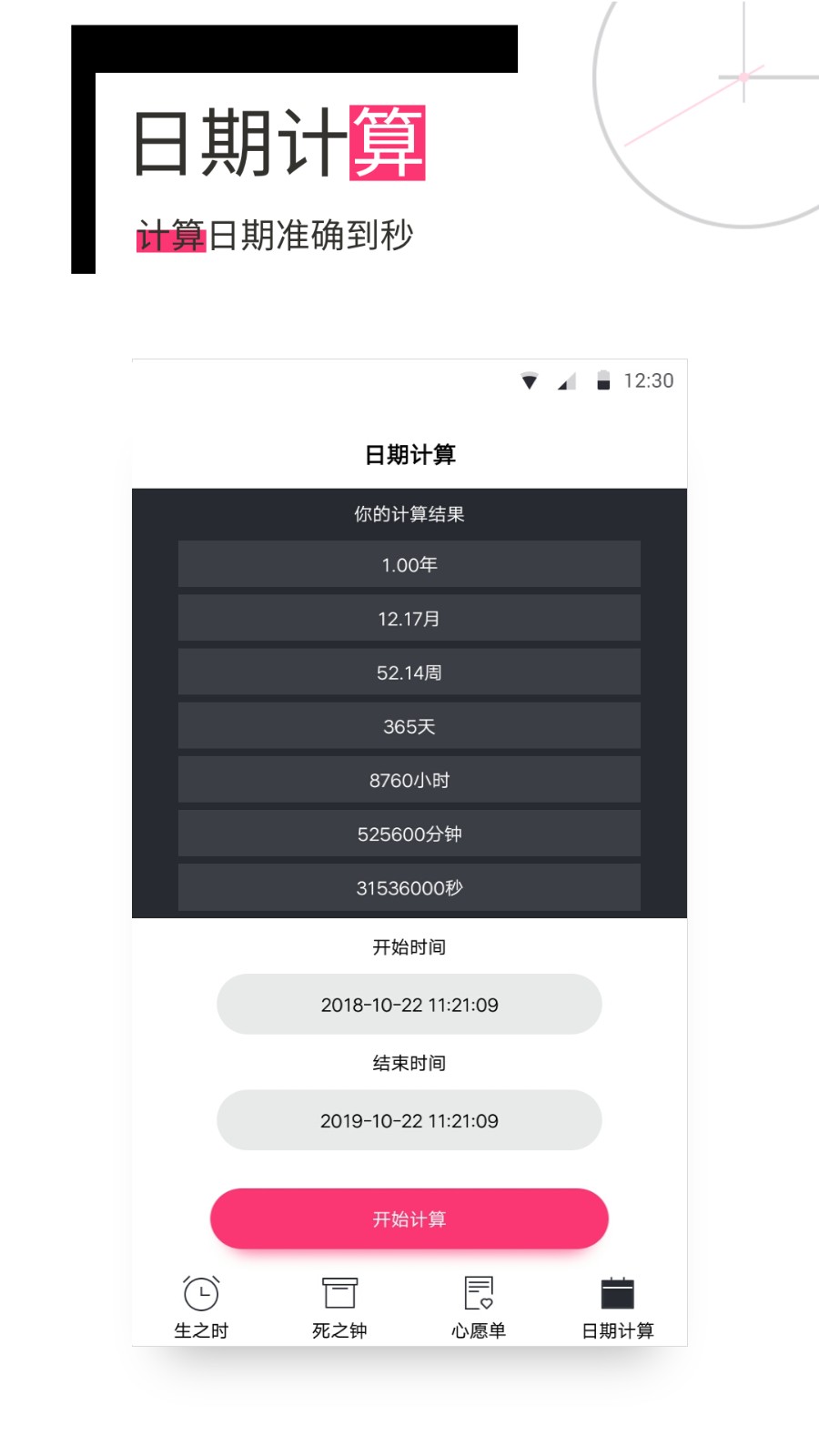 5、时间计算器,自动计算自定义时光区间的时长,精确到秒。