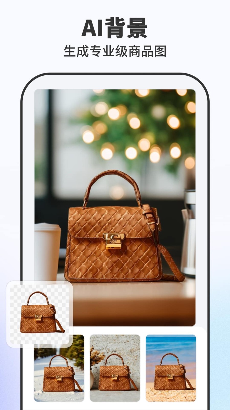 - 一键AI换背景,快速切换多组场景,专业商品图一秒即出。