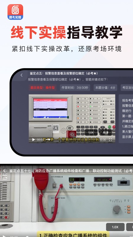 由专业老师在各个现场录制,详细指导如何应对目前线下实操考试的主流机型实操步骤,涵盖松江、泰和安、海湾 5000、众海、蓝天、海湾 5000H、北大青鸟、国泰怡安、依爱等全国主流机型,帮助学员精准掌握实操要点。覆盖中级监控必考点 12 个鉴定项,抽考点 26 个鉴定项; 中级维保必考点 19 个鉴定项,35 抽考鉴定项。
