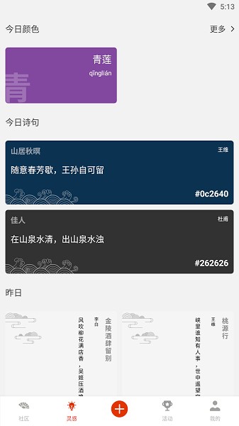 3、点击灵感界面,能为你带来今日推荐的颜色,给你带来制作灵感。
