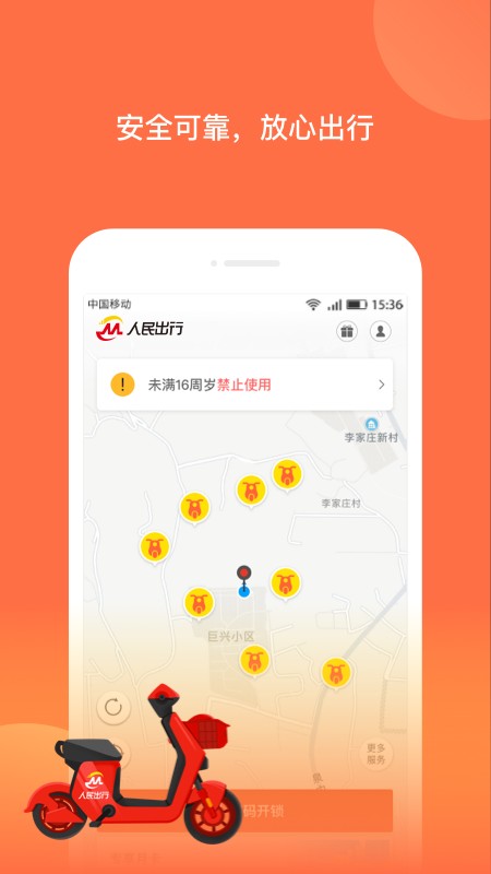 人民出行共享车app为用户提供便捷、智能、环保的出行解决方案,主要服务于短途出行需求的人群,通过电动自行车的共享模式来满足用户的日常出行需求,能够轻松扫码骑行,价格非常的实惠,支付费用也是非常的便捷。