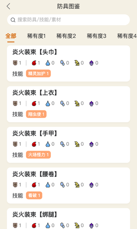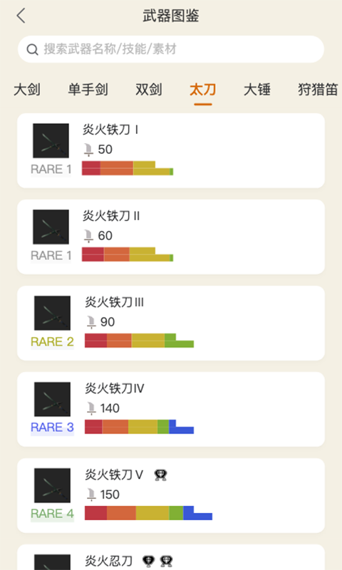 3、应用整合了武器、防具、怪物、技能、道具等多维度数据模块,所有内容分类清晰、检索便捷,支持关键词搜索与条件筛选,实现高效精准的信息定位。