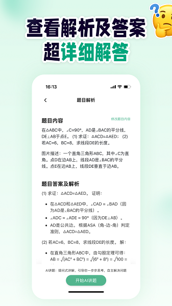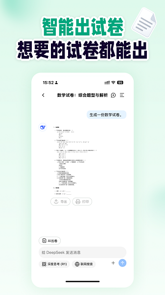 3、无缝接入领先的AI模型DeepSeek,具备强大的数学推理与语言理解能力,支持复杂应用题、几何证明、方程求解等多种题型的深度解析。