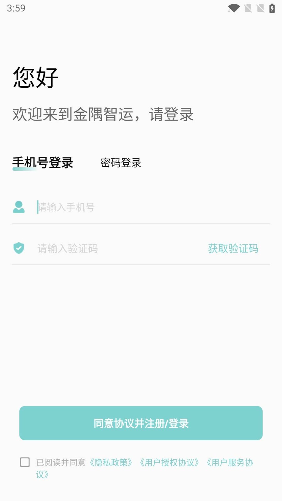 第一步,输入手机号,验证码,勾选用户协议。